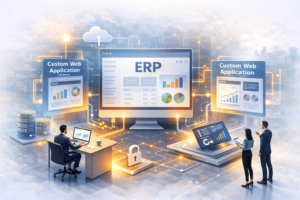 An HR team uses a custom employee portal. Employees apply for leave, check payslips, and update details through a simple interface. The ERP processes the data in the background.